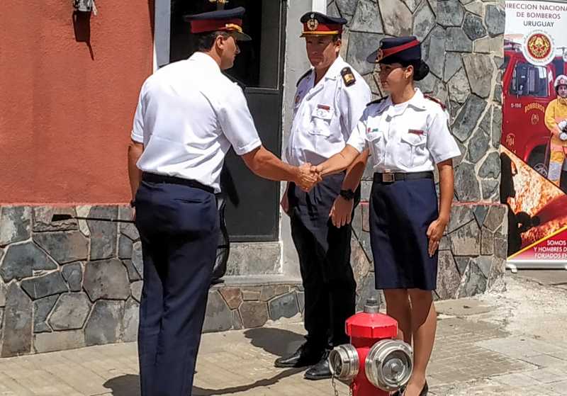 Acompañada por su familia y amigos este jueves se cumplió el acto por el cual Antonella Barboza fue impuesta como jefa de Bomberos de Fray Bentos en lugar de Mathias Alsua quien ahora asumirá como jefe de Bomberos en Salto.
