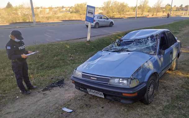 En tanto, un hombre dijo ser el conductor del rodado y que al momento del hecho viajaba solo. Comentó que había salido del trabajo y se dirigía hacia su casa cuando notó que se trabó la dirección y el acelerador, por lo que salió de la faja pavimentada, en un leve descenso del nivel del terreno, y volcó. “