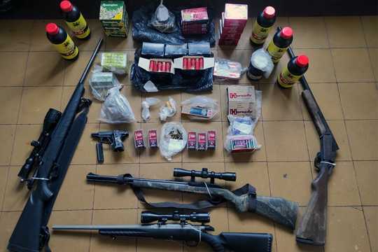 Durante este trabajo se incautaron tres rifles con mira telescópica, una escopeta y una pistola (dos de estas armas se encontraban a nombre del indagado, mientras otras dos se encontraban a nombre de otras personas), 2.329 municiones de diversos calibres, 500 puntas de diversos calibres, 65vainas, 252 fulminantes, 6 recipientes de pólvora, un cargador y un celular.