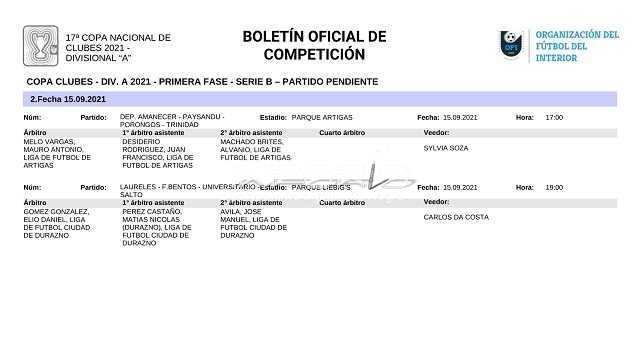 Por esta serie, las posiciones indican que el líder es Porongos con 4 puntos, Universitario 3 puntos, Laureles 2 puntos y Amanecer 1. Este próximo miércoles 15/09, en el Estadio Artigas de la capital sanducera, Amanecer recibirá a Porongos y Laureles en Fray Bentos recibirá a Universitario de Salto.