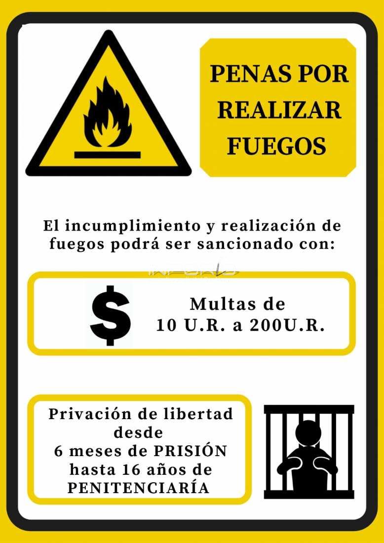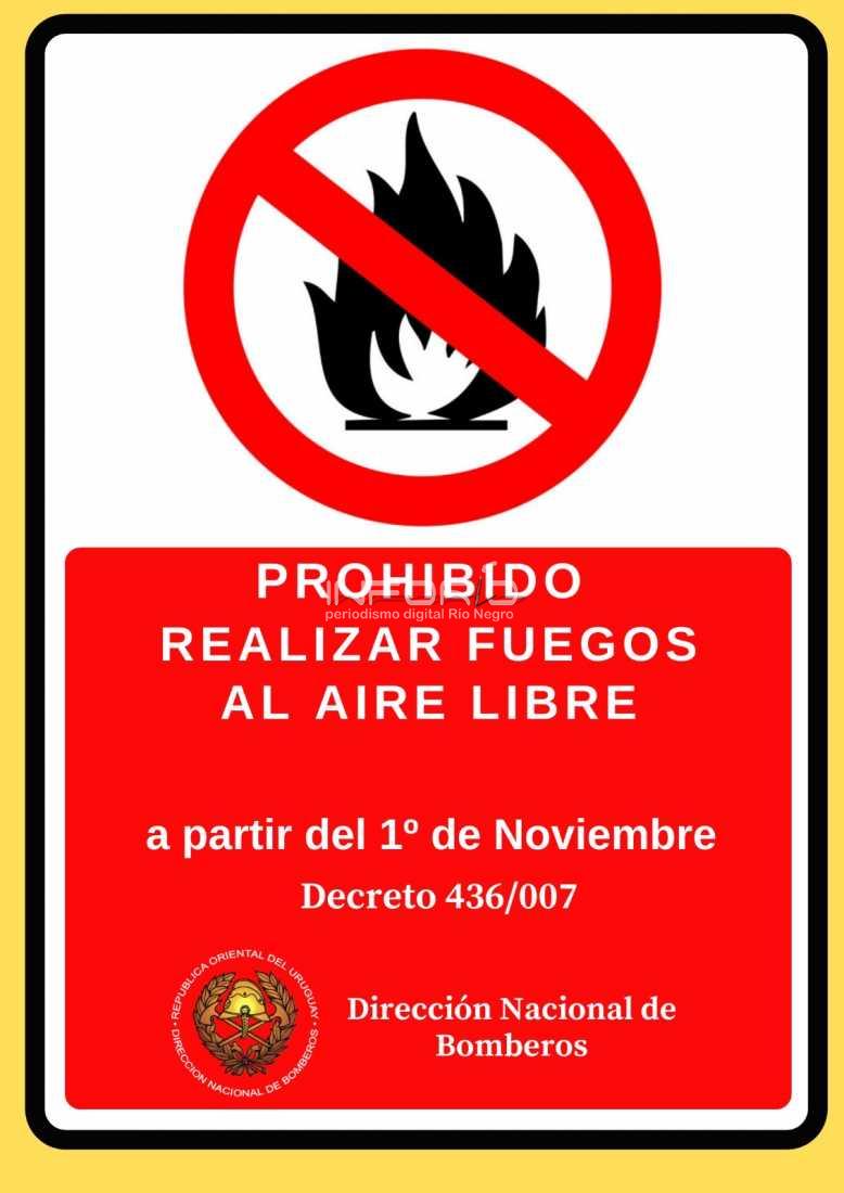 A partir del 01 de noviembre de 2021 de cada año el decreto 436/007 prohíbe la realización de fuegos y quemas de cualquier tipo al aire libre en todo el territorio nacional a partir del 1o de diciembre y hasta la segunda quincena de abril del siguiente año. Sin embargo, este año y como resultado de una propuesta realizada por el Sistema Nacional de Emergencias, la prohibición entrará en vigencia el 15 de noviembre.