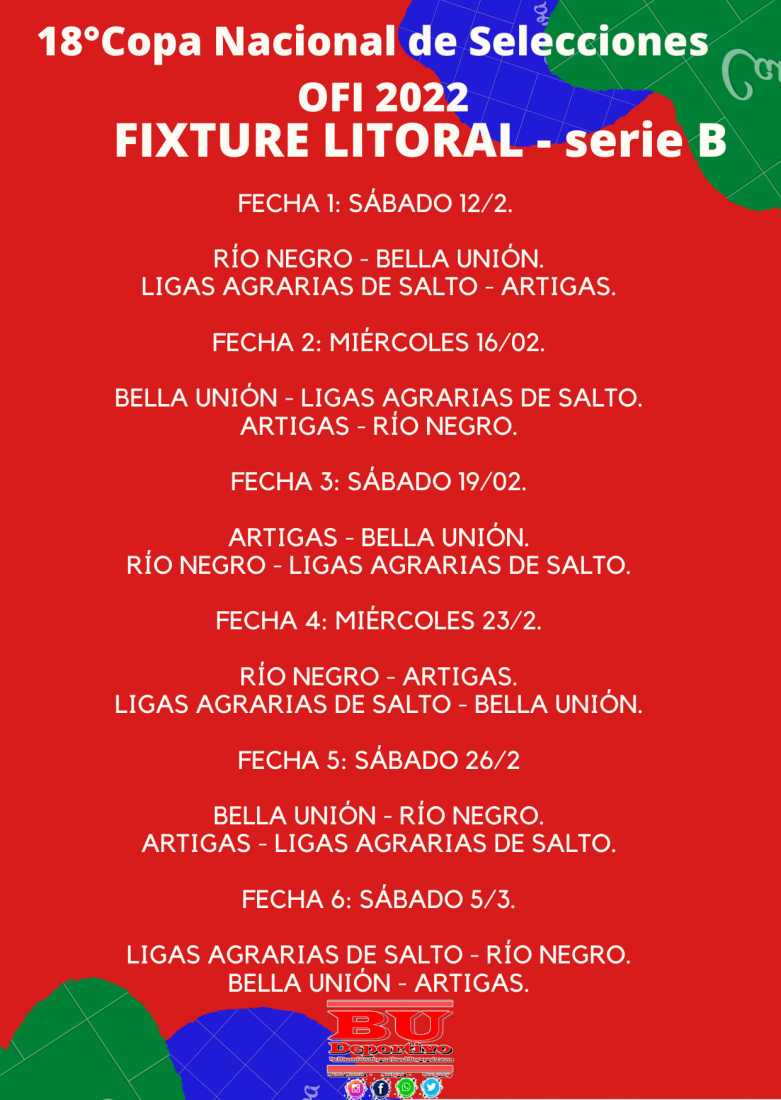 En lo que respecta a justamente la Llave Regional Norte Litoral - Serie "B", indica que Río Negro es local ante Bella Unión con éstos detalles:.