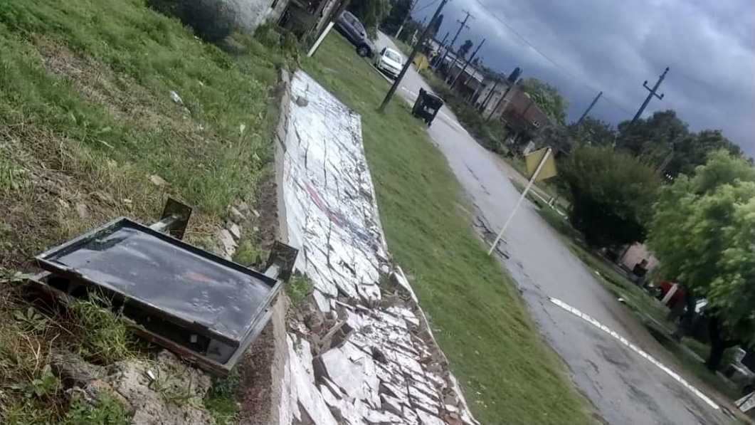 En pocos minutos se dio una situación muy particular, una racha de viento de más de 100km/h, paso por Fray Bentos y rompió la estructura de un muro sobre calle Alzaibar, perteneciente al Baby Fútbol del Club Centenario.