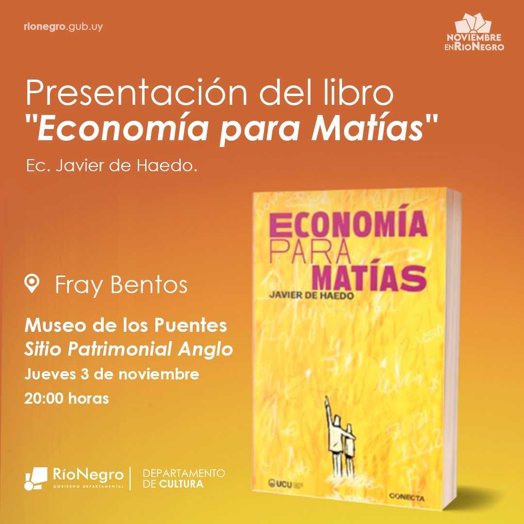 “Economía para Matías”, del prestigioso economista Javier de Haedo, asume un desafío mayor; tratar de explicarle a los jóvenes uruguayos, algunos conceptos esenciales para entender el funcionamiento de las relaciones económicas en lasociedad.