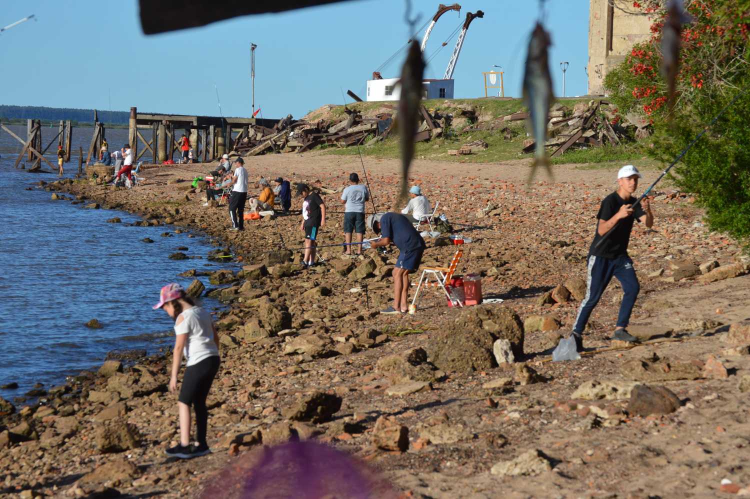 Una vez más, en la zona detrás del ex frigorífico Anglo, donde naturalmente se hacen cita los aficionados a la pesca y mucha gente, que con termo y mate, concurre a mirar las destrezas y estrategias, de los muchachos con sus reeles, tratando de lograr la pieza mayor!!