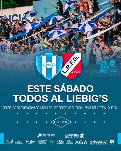 Río Negro Capital se juega el Campeonato en su dos divisionales el título del Litoral, aunque ambas selecciones están clasificadas al Campeonato Nacional de OFI. Recibe la Albiceleste en el estadio Parque Liebig´s, a su similar de la selección de Young (Río Negro Interior), en la categoría Sub 17 y a Guichón (Paysandú Interior), en la categoría Absoluta. Por la Segunda Final del Litoral (Vuelta), en ambas categorías con éstos detalles: Arbitros- FINALES Sábado 25 - Parque Liebig´s SUB - 17 Hora 20:00: Río Negro-Young Eduardo Castillo (Central) 1° árbitro asistente: José Luis Moyano (Liga Carmelo). 2° árbitro asistente: José Indaburu (Liga Carmelo). ABSOLUTA Hora 22:15 : Río Negro-Guichón Andrés Castro ( Central) 1° árbitro asistente: José Indaburu (Liga Carmelo). 2° árbitro asistente: José Luis Moyano (Liga Carmelo). 4º Arbitro: César Arrúe. Arbitros de Liga de Dolores. Invitamos a todo el pueblo deportivo fraybentino, a acompañar desde temprano a los Juveniles a las 20:00 horas (que cayeron de visita 4 a 0 y van por dar vuelta el resultado) y luego a los Mayores (que ganaron de visita 1 a 0).-