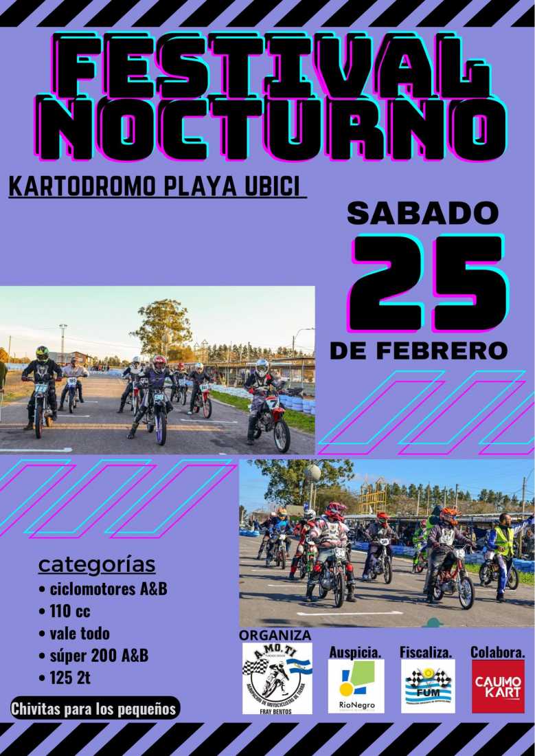 Este Sábado 25 de Febrero, se vuelve el Motociclismo de resistencia, al Kartódromo Internacional de Playa Ubici. Estarán la clásica hora de los 110cc y ciclomotores A&B, y los hasta 125cc 2T; más 2 "Mangas" del Vale Todo. Y por si fuera poco, los Súper 200 A&B!! Con buen servicio de cantina, todo este espectáculo con adrenalina asegurada, Ubici te espera!!