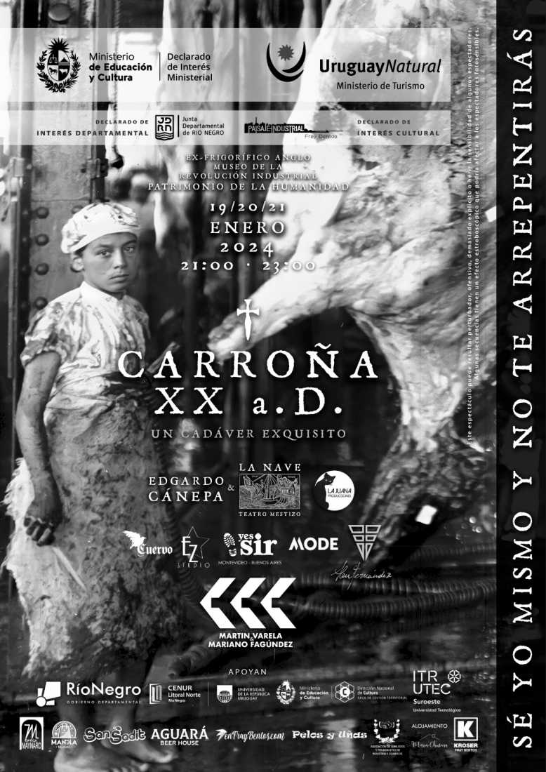 En el Museo de la Revolución Industrial del ex frigorífico Liebig-Anglo, los días 19, 20 y 21de enero, en doble función a las 21 horas y 23 horas, se desarrollará la obra: “Carroña, 20 años después”.