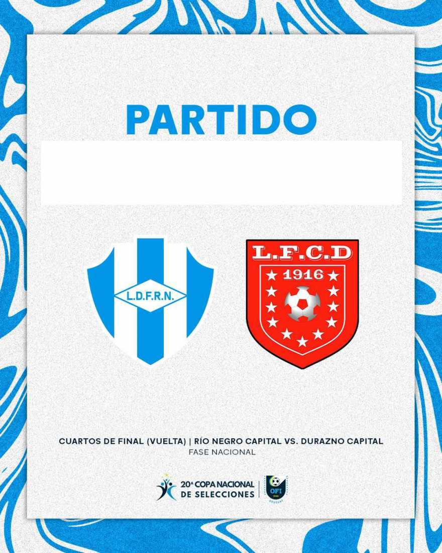 El juego entre Río Negro y Durazno se juega el miércoles por la noche, con éstos detalles: