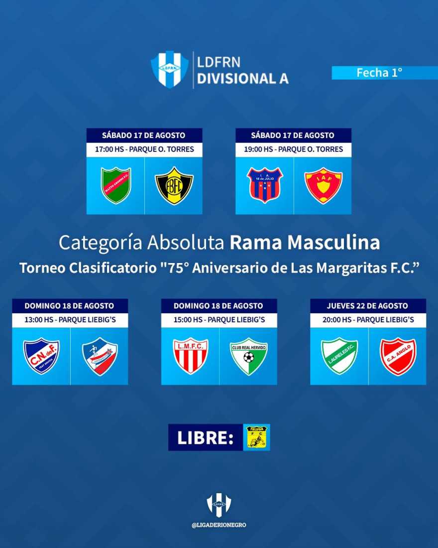El domingo 18 en el estadio Parque Liebig´s, a las 13:00 horas se enfrentan Centenario vs. Nacional y a las 15:00 horas hacen los propio Las Margaritas vs Real Hervido.