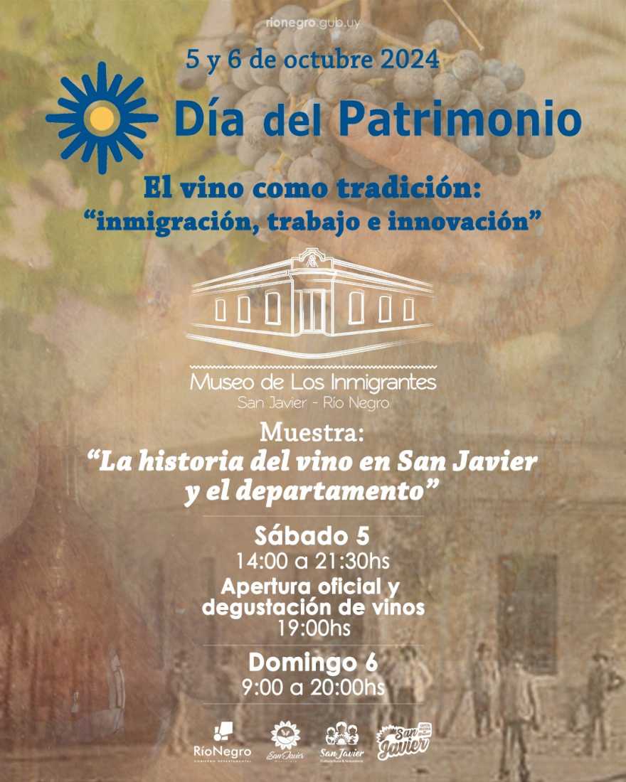 En el marco del tema elegido este año para celebrar el Día del Patrimonio: “El vino como tradición: Inmigración, Trabajo e Innovación”, en San Javier se ha planificado una actividad ha desarrollarse en el Museo de los Inmigrantes.
