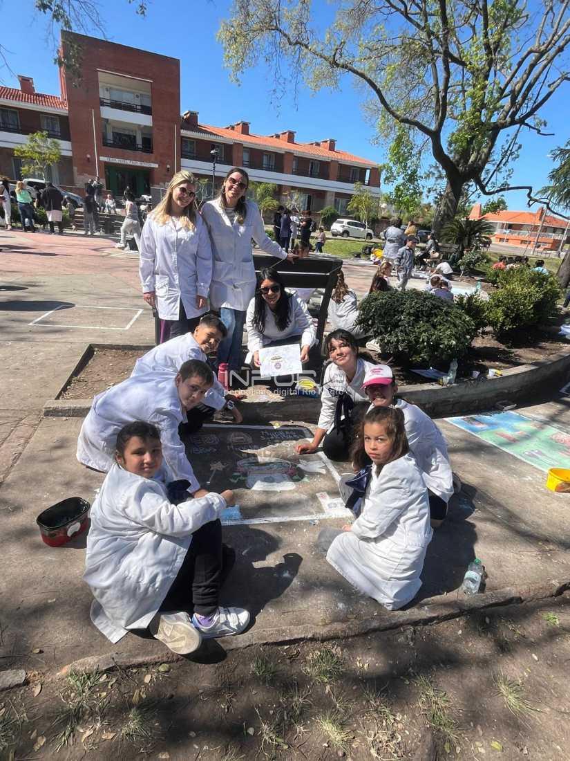 Este año el tema era “La magia de Rotary” y cada equipo concurre con un diseño ya elaborado que debe pintar en vivo en un espacio de 1 metro cuadrado, con tizas mojadas.
