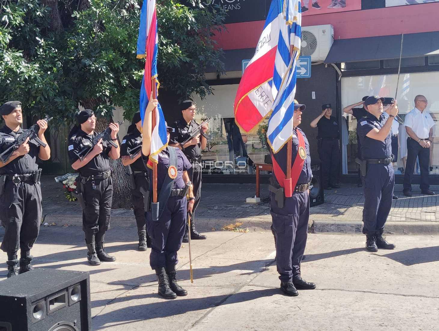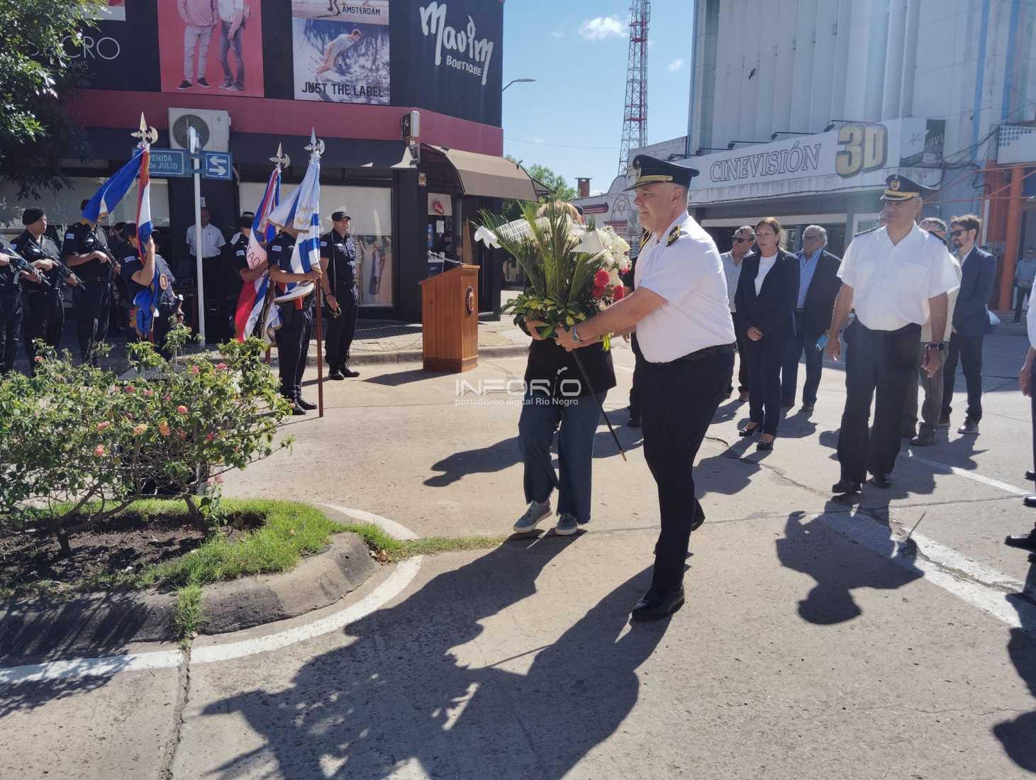 En acto cumplido en el Monolito de avenida 18 de Julio y Brasil, en Fray Bentos, el comando de la Jefatura de Policía de Río Negro, encabezado por el Jefe Jhonny Trías, llevó a cabo la ceremonia que recuerda el Día del Policía Caído en Cumplimiento del Deber.