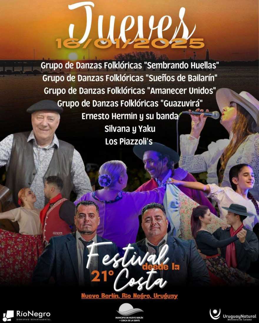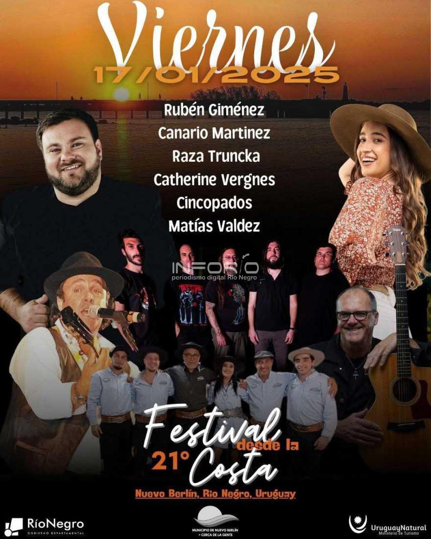 Desde hoy jueves 16 y hasta el domingo 19 de enero de 2025 se estará desarrollando una nueva edición del Festival “Desde la Costa”, en la localidad de Nuevo Berlín, en el departamento de Río Negro.