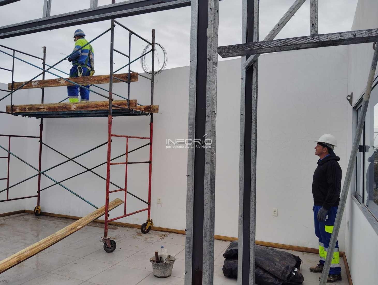 La Secretaria del gremio, Alicia Fernández, indicó que es una alegría inmensa que la obra se haya iniciado, con mano de obra municipal, armando los andamios para luego proceder a la colocación del techo.