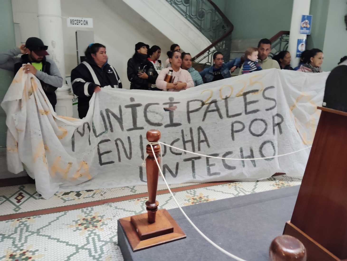 Los manifestantes, un grupo aproximado entre 70 y 80 personas, fueron recibidos por el Intendente Fabricio Tiscornia en el hall de la comuna, quien les expresó que según declaraciones de la Ministra de Vivienda, Cecilia Cairo, pidió tener un poco de paciencia hasta que se pueda volver a desplegar los programas con que cuenta la cartera para su instrumentación.