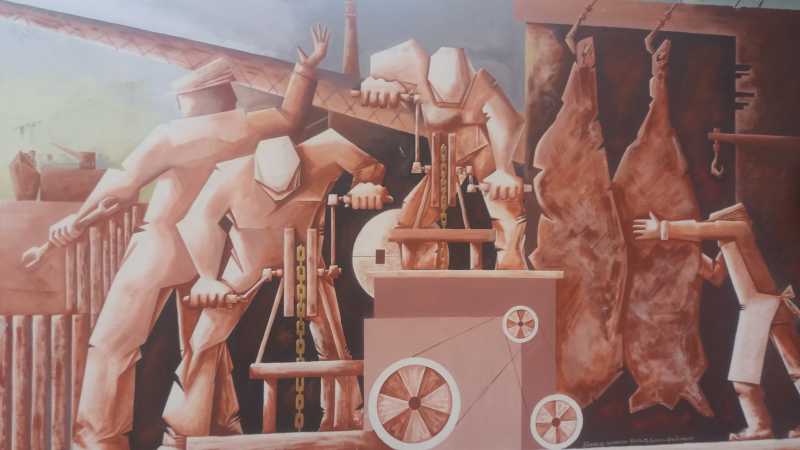 Según consigna @gesor el mural alusivo al frigorífico Anglo, ubicado en calle Rincón casi Argentina; que pintó el artista mercedario Angel Juárez aquí en Fray Bentos, será la cubierta de las carpetas del encuentro a nivel del MERCOSUR que se realizará en Montevideo.