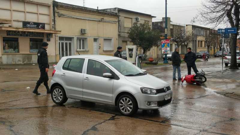 Auto y moto chocaron en la céntrica esquina