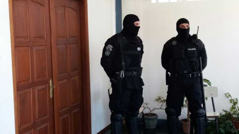 El operativo de allanamiento que terminó con las detenciones fue a pocas cuadras del comercio donde ocurrieron los hechos. A esta hora se toman las declaraciones en el juzgado de Young donde hay importante presencia policial y algunos curiosos fuera de la sede judicial.