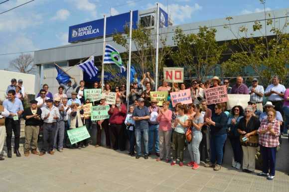 "Nos indigna este tipo de imposiciones arbitrarias a beneficio de no sabemos quién y no aceptamos más discursos bonitos ni con doble sentido", se expresó en la proclama en referencia a una entrevista concedida por el presidente del BROU a una radio de Mercedes, donde "desmintió" la reducción de servicios en Rodó, donde la institución tiene 53 años de presencia en la zona.