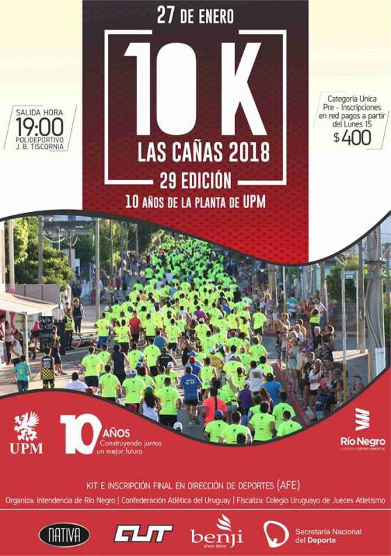 A buen ritmo se vienen realizando las inscripciones para participar de la tradicional maratón denominada 10 K Gobierno Departamental/UPM, que une deportivamente a la capital rionegrense con el balneario Las Cañas, y que se realizará hoy sábado 27 de enero.