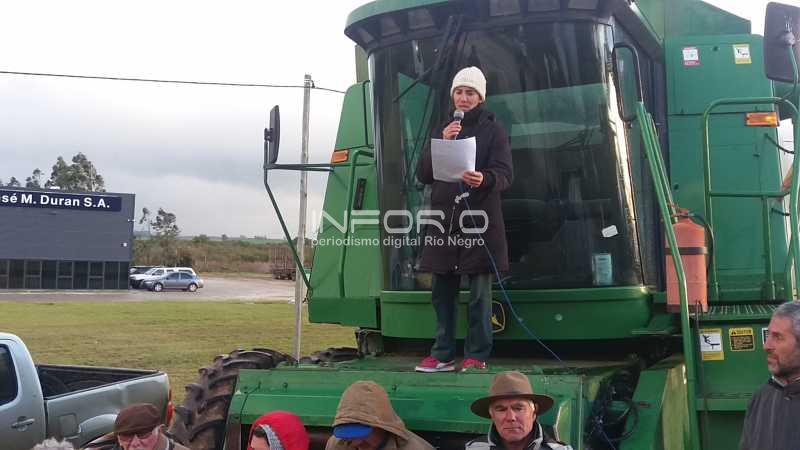 En ruta 2 a la altura del kilómetro 300, la proclama fue leída por Patricia Amarillo bajo una lluvia fuerte y se reclamó al gobierno mejorar la competitividad, mejor manejo de los recursos públicos y denuncian que el aumento del dólar obedece a una situación coyuntural regional y no a mejoras en la política cambiaría del país.
