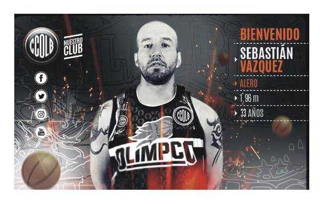 El alero uruguayo Sebastián Vázquez de 33 años y 1.96 metros, es la nueva ficha del CLUB CICLISTA OLIMPICO LA BANDA . Se suma a los confirmados Maximiliano Stanic, Jonathan Machuca y Karel Guzmán.