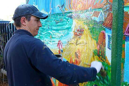 Durante dos semanas y media, Ibarguren ha pintado siete murales en ese centro deportivo, sit...