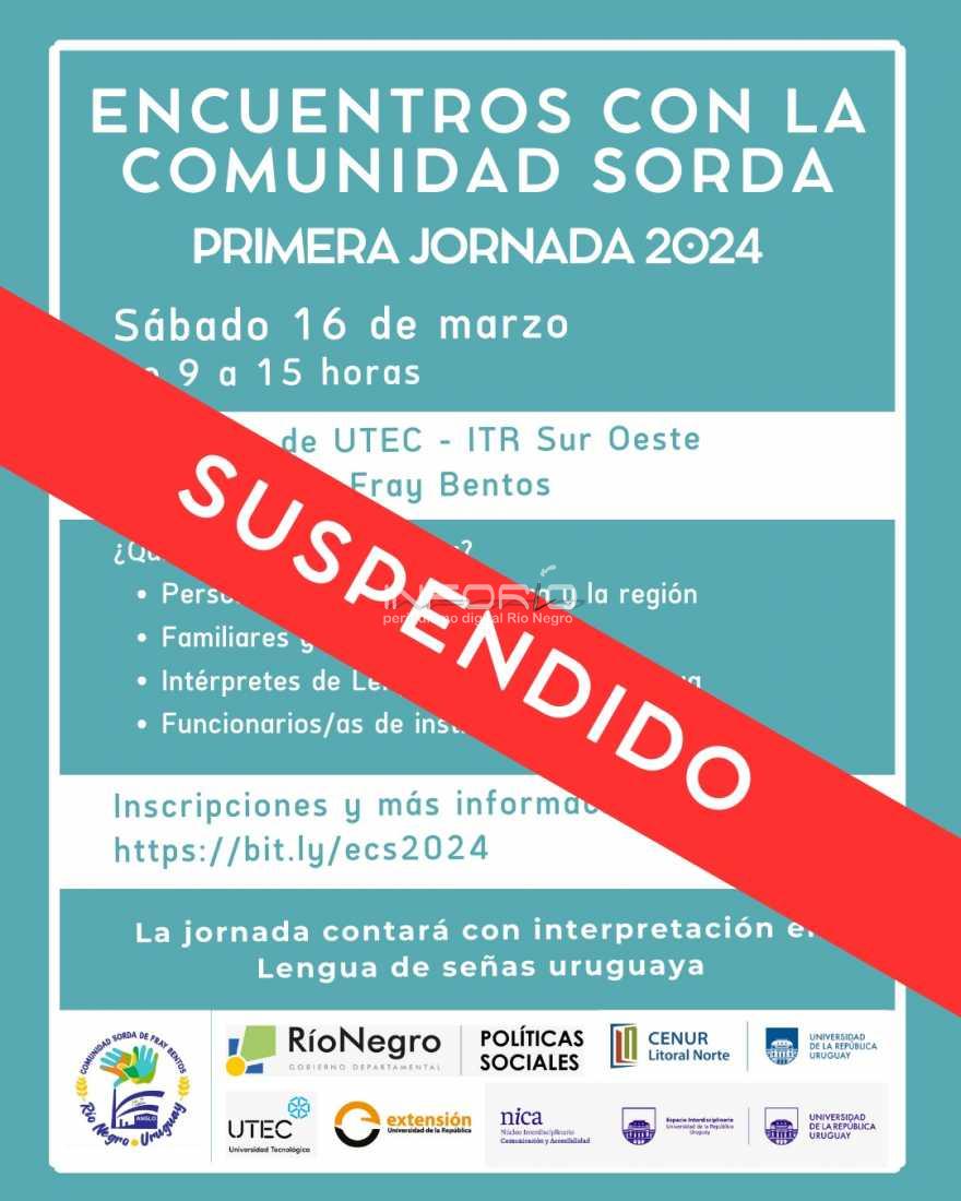 Desde la Casa de la Universidad de Río Negro se comunica la suspensión de la actividad denominada: “Encuentros con la comunidad sorda”.La jornada estaba prevista para el sábado 16 de marzo, pero considerando las alertas metereológicas, la Intendencia de Río Negro y el Comité de Emergencia...