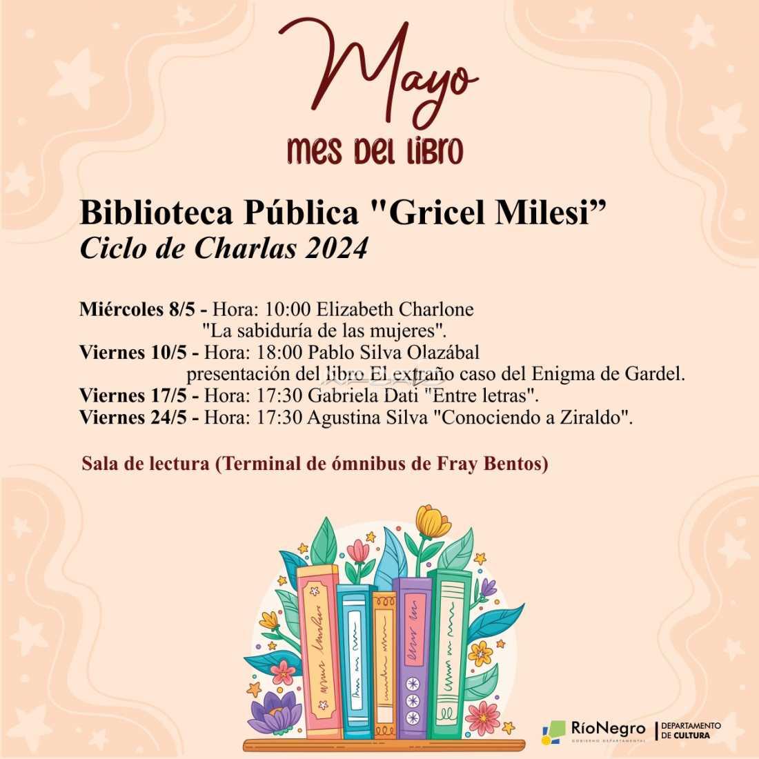 En el marco del ciclo de charlas 2024 y en, “Mayo, mes del libro”, la Biblioteca Pública “Gricel Milesi”, realiza la última charla de este mes.La invitación es para este viernes 24, a la hora 16.00, en la sala de lectura de la propia biblioteca, ubicada en la Terminal de ómnibus de Fray Ben...