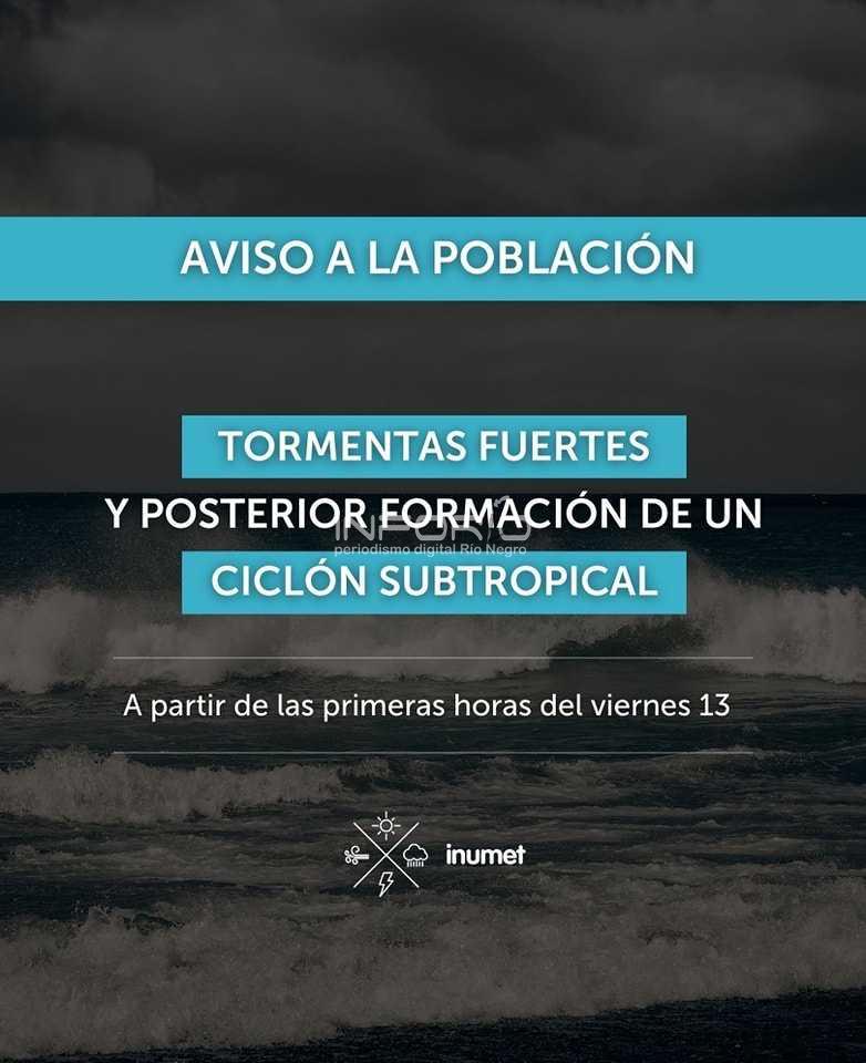 El Instituto Uruguayo de Meteorología es el organismo uruguayo encargado de prestar los servicios públicos meteorológicos y climatológicos. Elevó el siguiente informe para el dóa viernes, con advertencia por Tormentas Fuertes y Ciclón Extra Tropical ( ver fotos).-