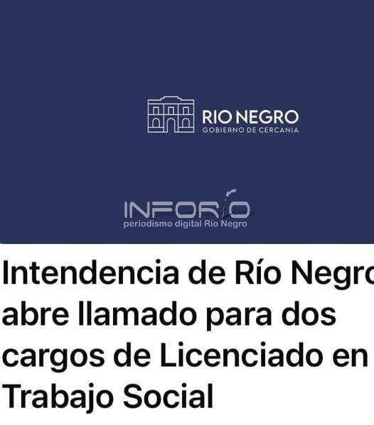 Intendencia de Río Negro abre llamado para dos cargos de Licenciado en Trabajo Social. La Intendencia Departamental de Río Negro abre un llamado externo (Ref. 04/25) para cubrir dos puestos de Licenciado en Trabajo Social en el Depa...