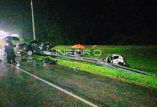 El siniestro de tránsito donde fallecieron 5 personas en el departamento de Maldonado, ocurrió a la altura del kilómetro 13 de Ruta 39 (al Sur de la ciudad de San Carlos), cuando por razones que se desconocen dos automóviles colisionaron frontal mente, tuvo como saldo una joven oriunda de Young fallecida.