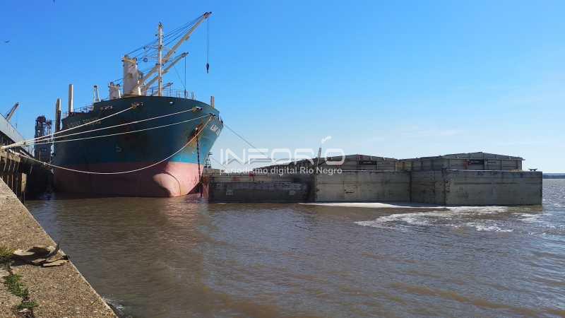 Este lunes se podía visualizar dos buques amarrados en el puerto oficial de Fray Bentos, uno de ellos con intensa operativa en los primeros días de la semana.