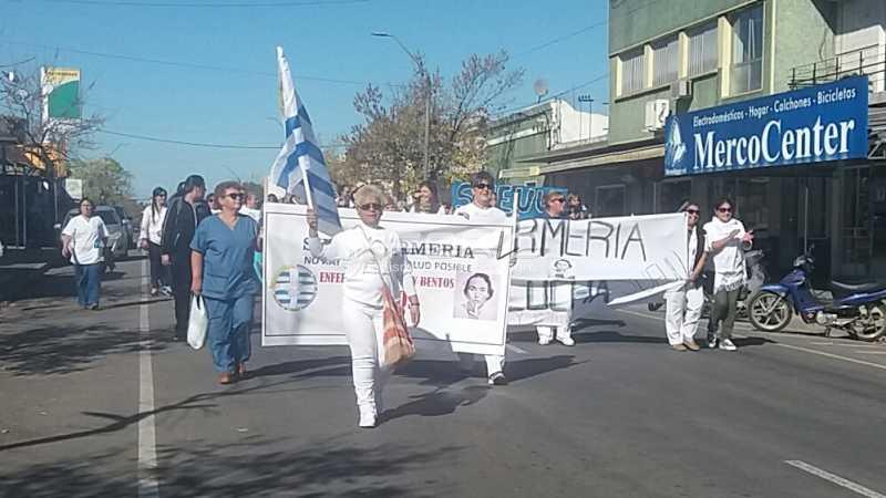 Los auxiliares de enfermería han iniciado un movimiento a nivel nacional que se ha comenzado a manifestar reclamando entre otros aspectos que se os reconozca como técnicos. Aquí en Fray Bentos se realizó una marcha por 18 de Julio desde el hospital hasta plaza Constitución, lugar donde se ley&oacu...